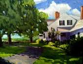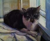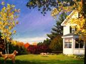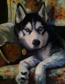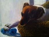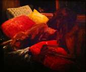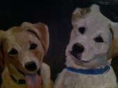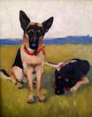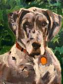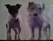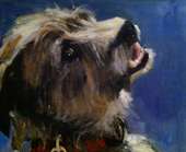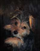 Paintings of dogs, houses, and other commissioned works.